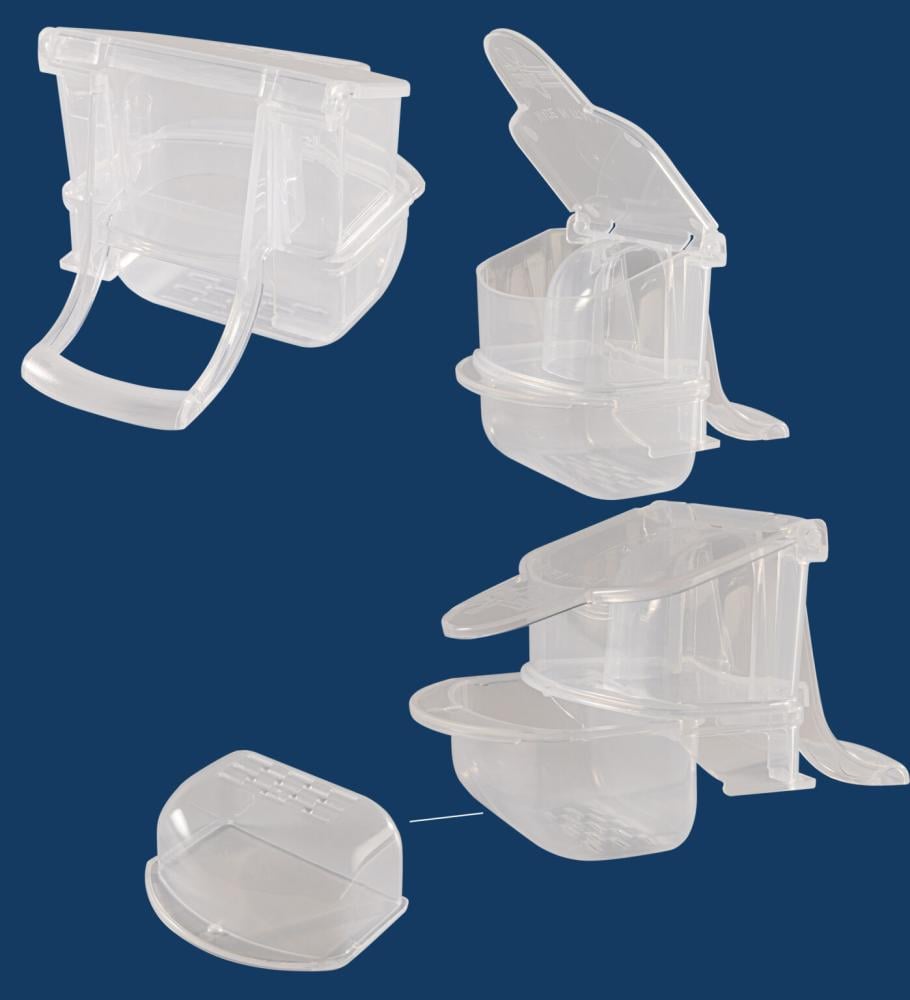 تم تصميم هذا الشكل بحيث لا يترك الطائر فضلات على الطعام بفضل الشقوق الموجودة في أسفل الدرج تضمن أن الطعام دائمًا خالي من الغبار.