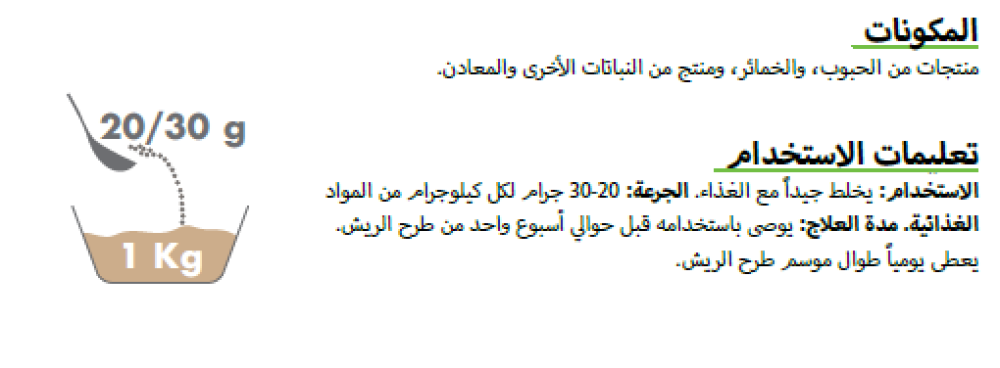 يخلط جيدا مع الطعام 20 الى 30 جرام من المنتج على 1 كيلو من الباتيه
